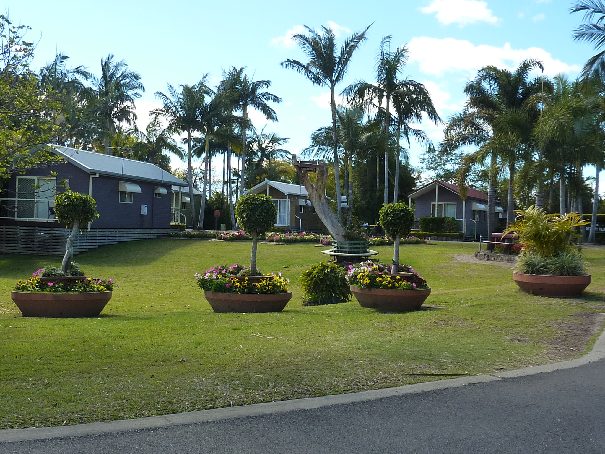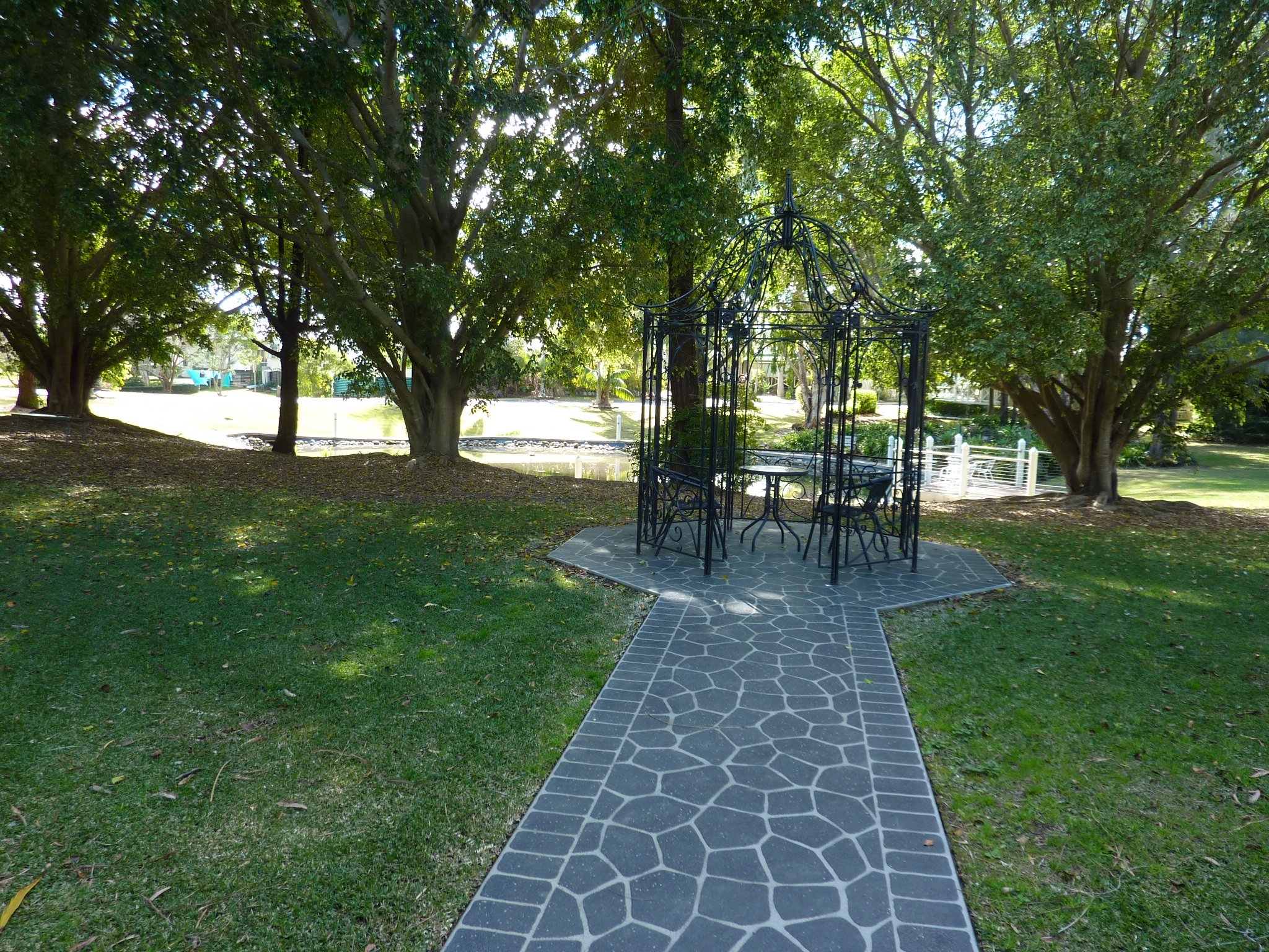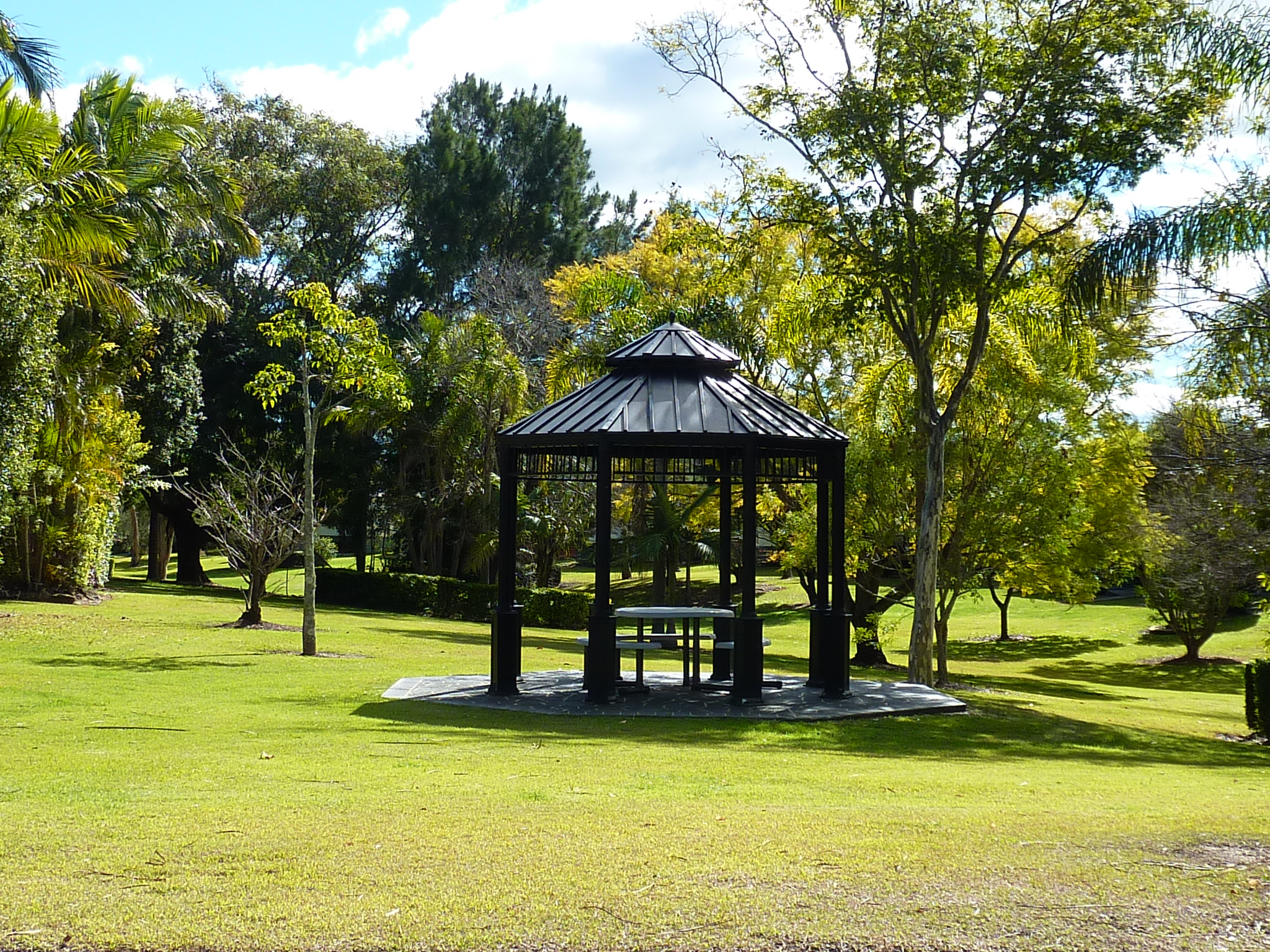 More like a botanical garden. One day I’ll count the gazebos, theres dozens of them in a multitude of sizes. There’s park benches under trees. There’s palm trees, jacarandas, moreton bay figs and native trees everywhere. There’s pots of colours and rose bushes. And there are birds chirping and singing everywhere.