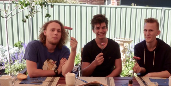 Next, how to get everyone to have their eyes open at the same time. How often is an otherwise perfect group photo spoiled by one person who had their eyes closed (usually that’s me). Today I asked everyone to open their eyes on the count of three. It worked, sometimes to well. But with a bit of cropping I think I’ve managed to get some reasonable photos of us all – and all eyes are open.