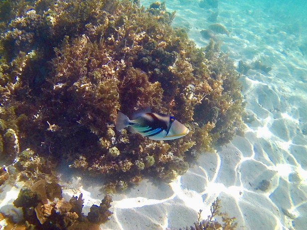 The water’s had a bit of chop on for most of the week, but yesterday it was a bit calmer so we took the opportunity to photograph some of the coral. We’ve seen fish in far greater numbers on other occasions when we’ve snorkelled the reef. Isn’t that just Murphy’s law though, the day you take your camera, they all become camera shy and go into hiding.
