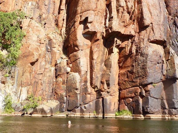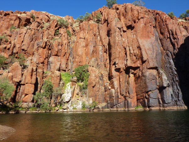 After our refreshing swim, we journeyed on with eager anticipation to the actual park. And from there on we were a bit disappointed. All the best scenery seemed to be on the approach to the park and at Python Pool, and in comparison the actual park was relatively flat and uninteresting. Are we pleased we went though – absolutely, I would go again. The 260 km round trip to Python Pool was worth every kilometre of the bone shaking drive. To float in clear, clean water looking up to the top of the rich rocks, and the contrast of the vivid blue sky above – an absolute pleasure!