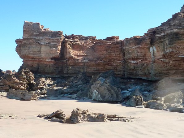 How wrong we were. We didn’t get past the first beach on our list. Entrance Point, is near the Port and Broome fishing club, a good place to throw in a line (i’m told preferably on an outgoing tide – unusual). The beach is firm packed red sand at low tide, and with several boat ramps, a perfect place to launch a boat. Such an interesting place to walk, full of rock formations that arguably rival, and in my opinion, surpass the famous rock window at Kalbarri. We spent the entire afternoon at the one beach, so the other beaches on our list will have to wait for another day.