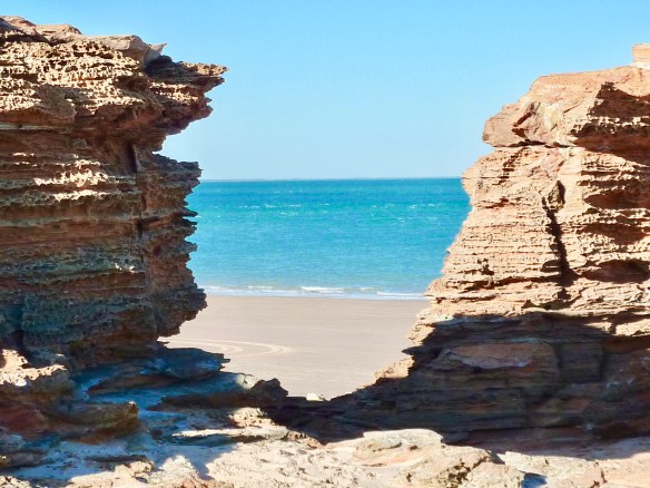 Just like an interesting garden with windows framing points of interest, walls, windows and doorways leading visitors to yet another vista – Entrance Point has it all. No wonder it’s famous for wedding photography, so many natural frames. Im sure a landscape gardener couldn’t have planned it better. As if Cable Beach isn’t enough, Entrance Point, a total contrast, full of interest, different – and just as perfect. A real pleasure! We’ll be back.