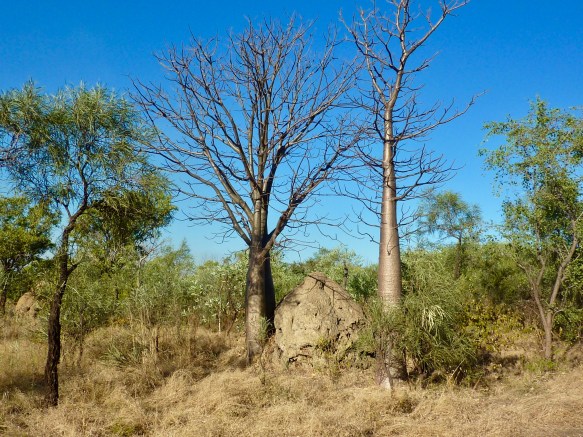 These bottle shaped trees are green and leafy in the wet season, and drop their leaves once the dry arrives. This year they didn’t seem to be sure what season it was.