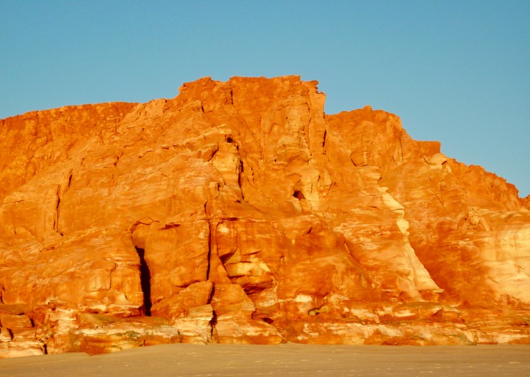 And then when the sun started it’s decent it was time to head around to the western side of the peninsula. Cape Leveque is famous for it’s sunsets, but it’s not as you’d imagine. It’s not the sky that brings artists and photographers from near and far to capture the glorious spectacle as the sun drops towards the horizon. As the sun sinks towards the horizon the rays hit the orange cliffs lining the shore. They shine bright, almost as if they’re lit from inside.