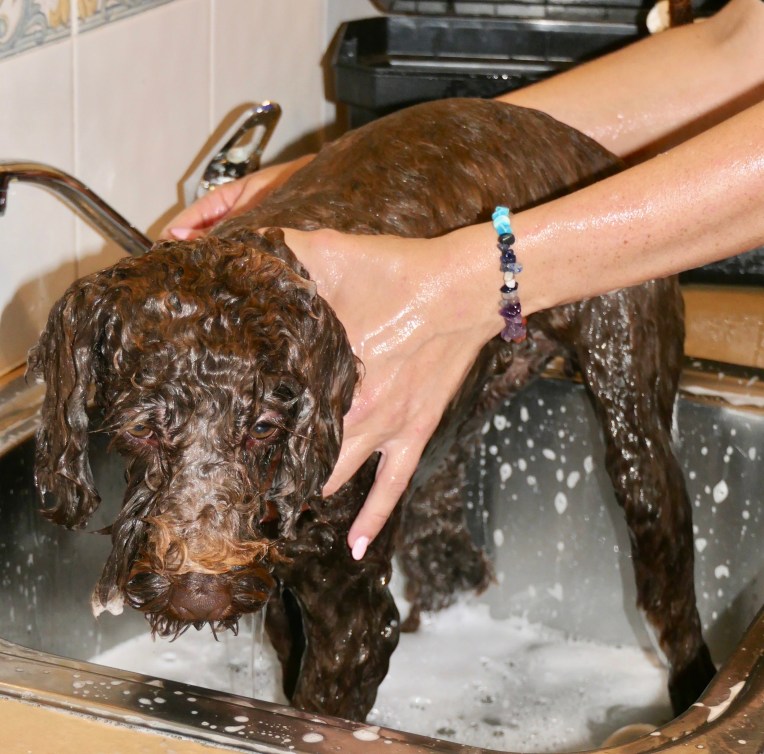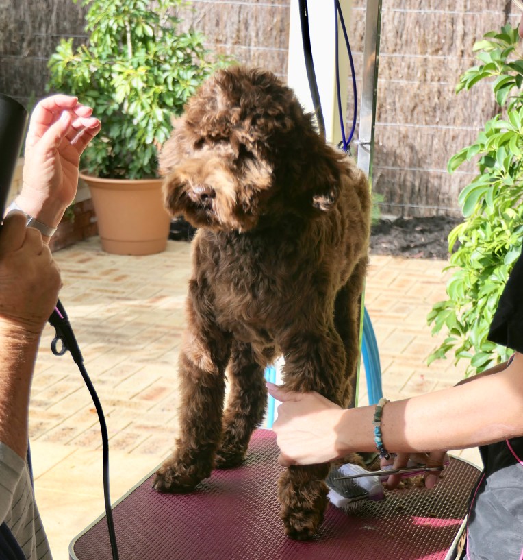 We’ve purchased clippers, but as yet haven’t tried them out on him. Instead we hired a professional dog groomer to come to the house and get him started, while we carefully watched.