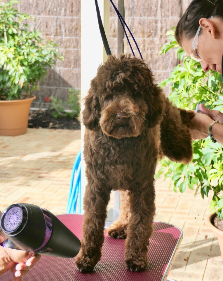 Auntie Bec, his groomer (professional name, not our aunty), is to be marvelled at. Tilly doesn’t like his bath, doesn’t like the hair dryer, doesn’t like his nails being clipped, and has an intense hatred of the brush. Like most parents, he has us treating him with kid gloves and trying to ease him into it. He’s ten months old now, and guess what – it isn’t happening! Yes, he has wrapped around his little fleecy paw.