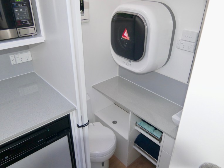 1. It’s a little Daewoo washer. They made them for small European apartments. We’re waiting for some fine weather so as we can have our first trial run. Don’t want our first run to be a wet experience.