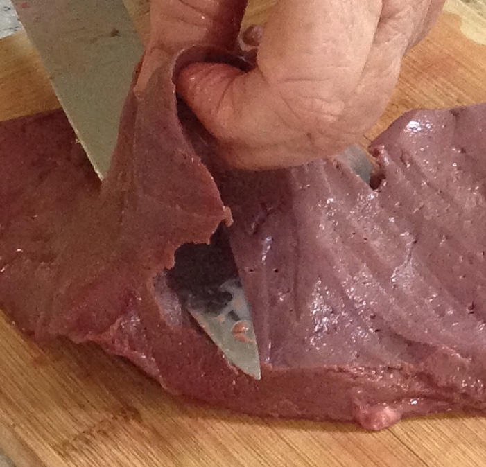 The preparation is vital to the end result. Some butchers will slice it for you, but I’d recommend purchasing your liver whole, and be prepared to throw out at least half of it.