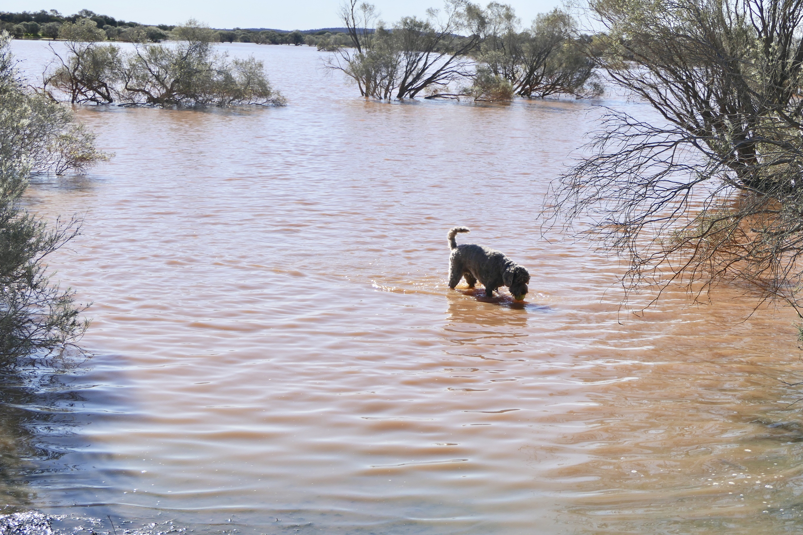 We refuelled in Cue before continuing on a further 20kms up the road to Lake Nallan. I’m pleased we’ve stayed at Lake Nallan before, otherwise we would most likely have missed the entrance to this as well. It used to be sign posted, but the signs seem to have been removed. There aren’t any facilities at the place so there is a need to be self-contained. If you are self contained, and if you love green meadows, open spaces and privacy, then at this time of year this a place worth marking for a night’s kip, especially if you have a dog.