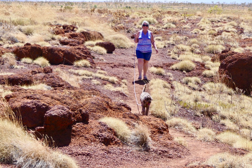 Another early start the next morning with a toilet stop at Ngumban Cliff Rest area en-route to our overnight destination in Fitzroy Crossing. I liked this rest area. Wide open spaces with interesting variations to the landscape, and a nice little track to walk Tills down. Note to myself – next time it’ll be worth considering this place for an overnight stop.