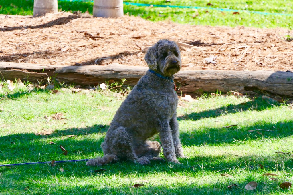 Tills enjoys relaxing on the grass watching the world go by. Two very happy campers, and one happy dog relaxing on Broome time for the next nine nights. How very civilised!