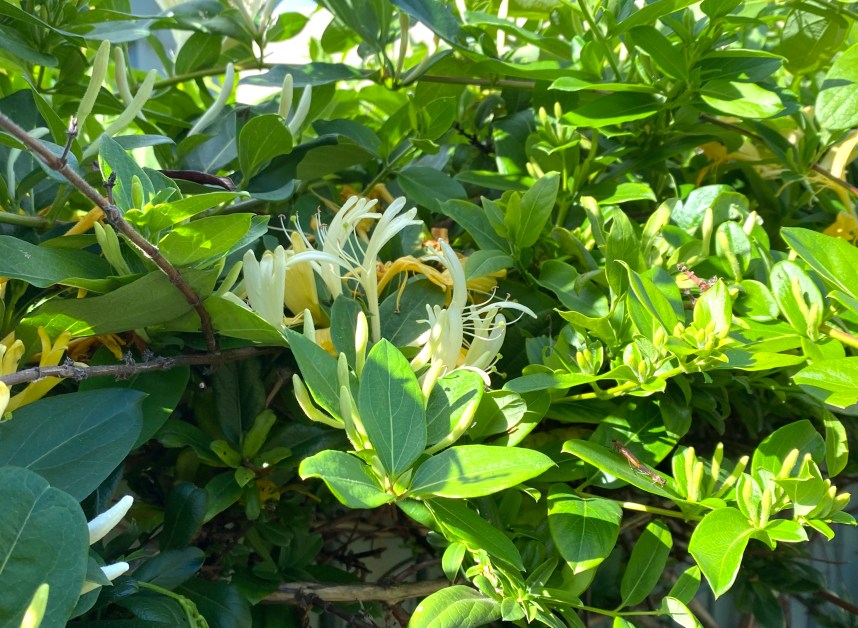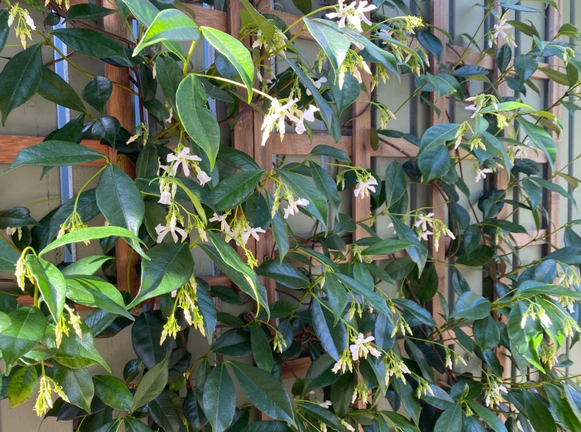 It’s a wonderful time in our garden at the moment. The lawn is growing vigorously and needs cutting at least weekly. There’s nothing quite like the smell of new mown grass. The deciduous trees are re-clocked with their new leaves, and the flowers are blooming. The perfume wafting around in the breeze is delightful.