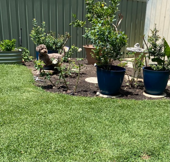 He’s a labradoodle. Amanda has the Schnauzer. Sterilised at 7 weeks of age, so at three he’s still very much a puppy. He’s selectively well behaved, he’s the selecter! Took him to obedience training tonight for the first time in 2 1/2 years. Must say, he did me proud tonight, but Who knows what he’ll do next week. Most times he’s happy to be obedient – except when he isn’t!