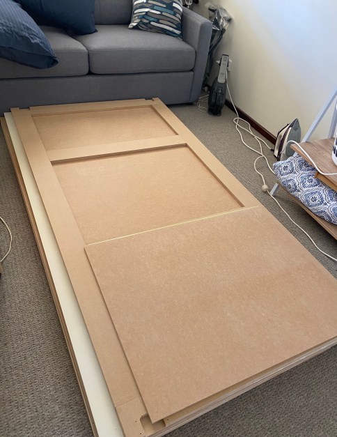 The wardrobes may take a while to complete. The specialised soft close hardware to hang the sliding doors is currently on a ship off the east coast of Australia, with strike action preventing it from being unloaded. Paul will still be able to fit the wardrobes out, and we’ll be able to move both our clothes, and us into the room as soon as the curtains arrive.