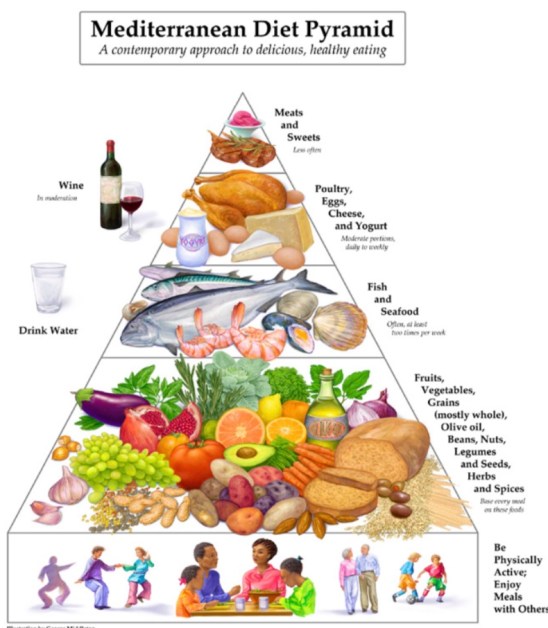 When I wrote that post I did take a bit of notice of the Mediterranean dietary pyramid. I had never been aware that grains and beans were prominent with the Mediterranean people, in fact, more prominent than fish. That surprised me.