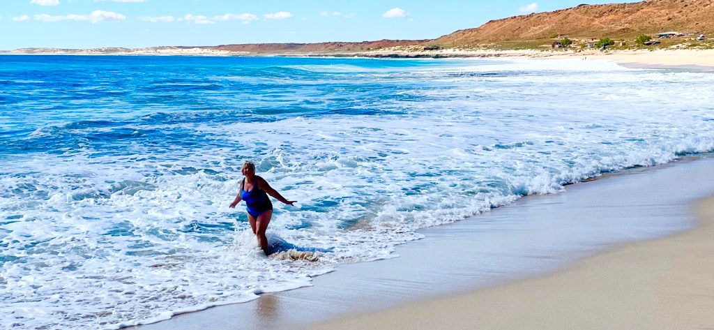 Not only is there a small general store/cafe at Red Bluff, but the camping is spacious, and the place is immaculately clean. There’s no water or power for the campers, and there’s only drop, composting toilets – very clean. It is gorgeous, and not at all like crowded Quobba, and not a dredlock in sight. But wait there’s more, much more…..