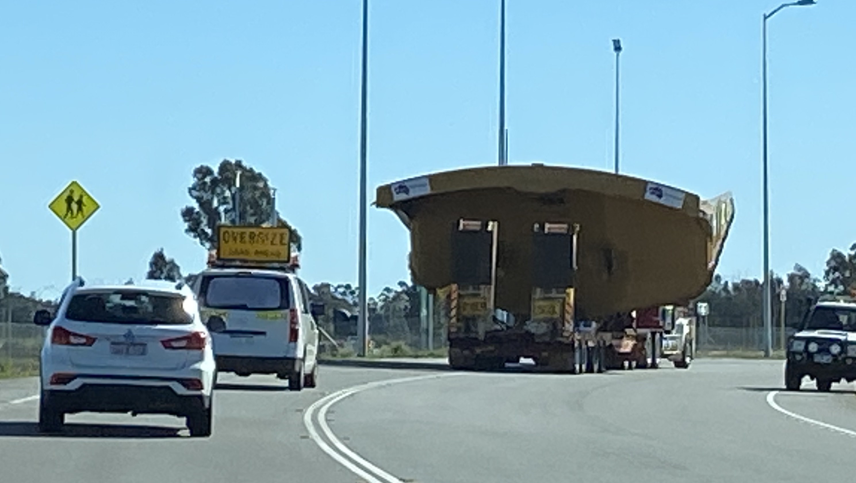 We by-passed Perth, missing a turn as we journeyed along. The missed turn didn’t add a lot of kilometres to our trip, getting stuck behind two big loads added a bit of time. We remind ourselves we’re retired, and a bit of delay is of little consequence. Besides, it’s a great experience to watch the co-ordinated effort of police and multiple support vehicles controlling the traffic so as to allow these heavily laden beasts to travel safely at 80kms an hour. We followed behind them for close on an hour before they turned into a roadhouse for fuel.