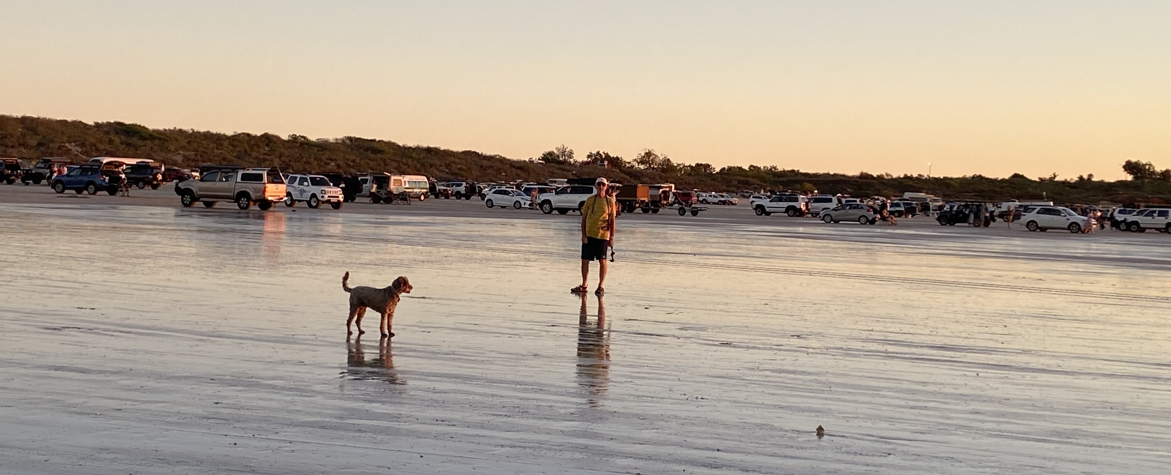 Once set up, we did most of the washing from the trip, then had a refreshing dip in the pool. Afternoon coffee with friends, and it was time to take Tills to the beach for his much promised walk. This time we drove up to Gantheume Point. Broome is currently heaving with people, so there were literally hundreds of cars park on the sand. We parked up, and walked for half an hour up the beach again, then back again, wondering all the time if we’d manage to find our car when we returned.