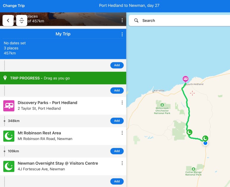 Picturesque it isn’t, quiet and peaceful it isn’t. But it’s clean. We paid our ten dollars fee, and set about washing the red dust off Tills. We were next, a shower to get the red dust off ourselves, and over to the pub for a cool drink and their Wednesday night special of steak and chips. Dinner was ok, nothing great, but we didn’t have to cook it, or clean up afterwards. So that was yesterday’s travel. That extra 109 kms will shorten today’s trip considerably, so I’ll have time to give the van a bit of a clean before we leave. It’s starting to feel grungy…..