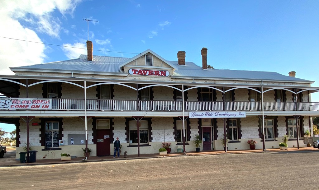 We were on our way through to the bigger wheatbelt town of Wagin, but having never passed through Dumbleyung before, and noticing on Wiki camps that the Grand Old Dumbleyung Inn offers free parking for caravans in exchange for patronage we just had to stop over for a night. We owed Dumbleyung that much after the hospitality they showed Paul’s mum and dad in 1990.