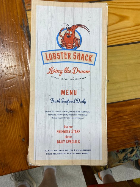 Cervantes is a very small Cray-fishing town. Nearby are the famous Pinnacles – a sort of desert with fossilised tree trunks. (don’t quote me on that rough description, I have been there many years ago, but I’m a bit vague as to their origin).