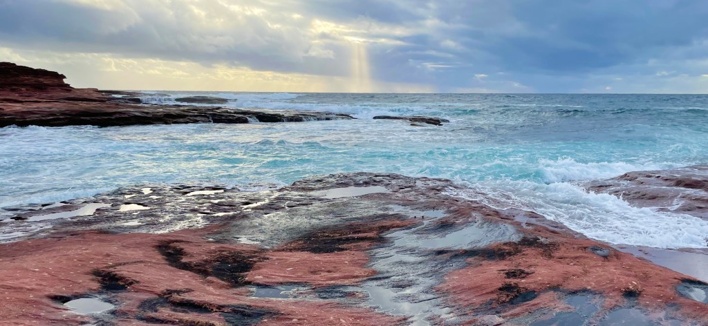 It’s now 7.50am on the morning of our second day. I’ve been typing this in bed, as I listen to the waves crashing onto the rugged, rocky coastline only a few hundred metres away. There’s no wind today and the sky is blue. I’m thinking – I‘m going to like Kalbarri!
