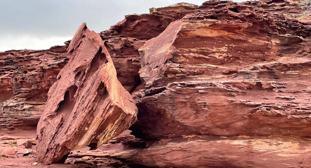 Mmmm – welcome to Kalbarri. We drove into town, parked up and went in search of lunch. Lots of places not open, two pubs that served lunch between 12 and 2. We arrived at the first at 12 only to be told that as two tables of people had already arrived, nothing would be available until 1pm. We tried the second pub, they hadn’t finished their lunch prep yet, and weren’t taking orders until the prep was finished. Next we tried the bakery, but they didn’t have tables. We wandered on.