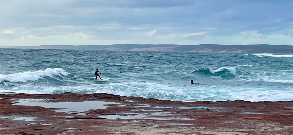 1. Actually it wasn’t which was surprising given it’s barely there alfresco status. They had a sign saying ‘no dogs’. I’d heard the hospitality was almost non existent in the town – never mind. We can cook for ourselves and save money in the process. As far as catching a wave – it has to be 40° in the shade almost for me to venture into the water, so no, definitely not!