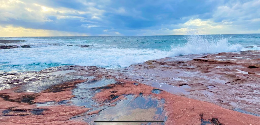We set up, had a cuppa, then the noise of the waves crashing to shore close by beckoned. It looked like quite a distance to the water, but it was only about a three minute walk, and what we saw when we arrived took our breath away. I’ll let the photos do the talking!