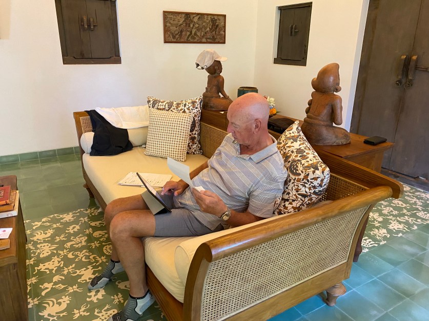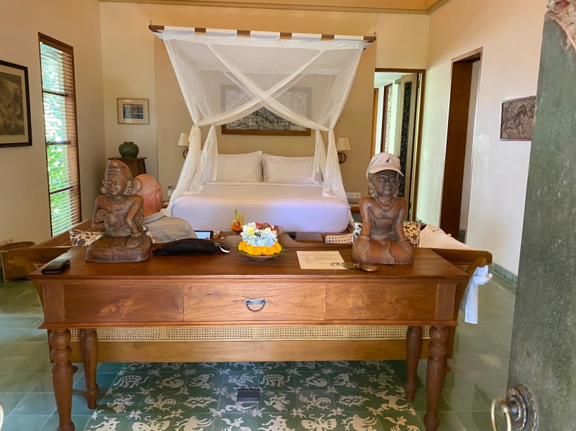 We really didn’t like Bali at all on our last visit. That was around 25 years ago, and on that visit we stayed in Legian. The hawkers were unbelievable, and totally spoiled any chance we may have had of finding something to like about the place. We have specifically chosen Sanur (or Snore as my son calls it), for the first four days of this trip with the hopes that we’ll find something away from the madding crowd in Bali for us. Everyone tells us there’s something in Bali for everyone. The Tanjung Sari has been chosen for the same reason, its simple, roomy boutique style is definitely appealing to us, and we’re hoping this time that at the end of this two week trip, we’ll have found a piece of paradise in Bali that we’ll be happy to return to time and time again. However, the price at Tandjung Sari may be prohibitive for return lengthy stays, it’s mainly been chosen as something that’s likely to give Bali a head start. We didn’t want to chose accommodation that got us off on the wrong foot.
