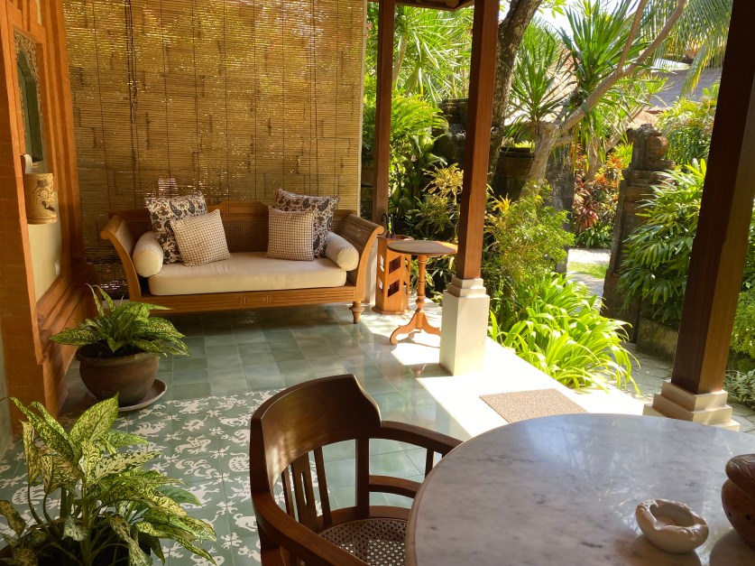 So far the short flight here has definitely been a big plus. The weather is warm and ok through the day, gorgeous and balmy at night, and we like our digs. The jury’s still out though as to whether or not Bali will delight us enough on this trip so as to entice us back many times in the years to come. We’ll see!