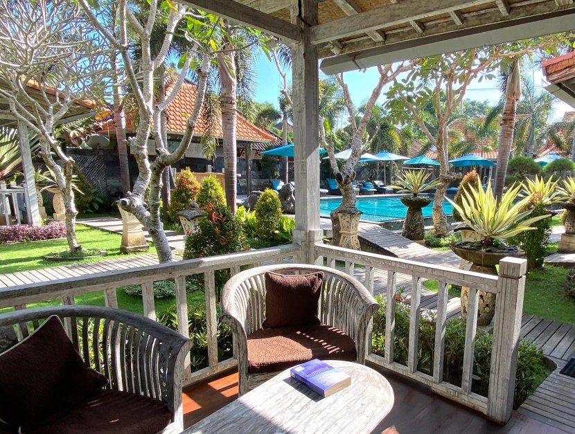 We showered and headed out to our booked massage – it was a fantastic massage. Then back to our home for the next four nights, another shower to remove the massage oil, and out in search of a spot to eat dinner. Pork ribs and cool Crystal Bintangs (Bali’s beer) in a casual bar overlooking the waters of Mushroom Bay hit the spot perfectly.