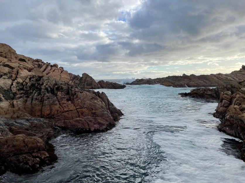 It was freezing, but one brave teenage girl was doing back flips into the swirling water as it crashed through the channel below the walk bridge constructed to make viewing of the spectacle safe. Paul and I have visited Canal Rocks countless times but we never tire of it. It’s beautiful on a calm day, but on a stormy day it is absolutely amazing. This particular visit it was inbetween, just enough fury in the Indian Ocean waves to showcase the wild-ness of the region.