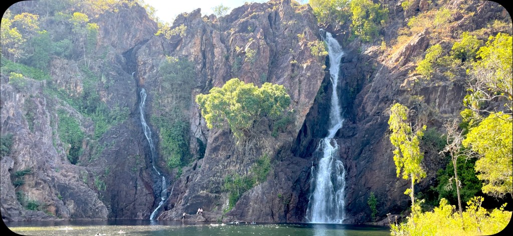 There’s quite a few walk trails in the park, along with waterfalls and swimming holes. Of course there’s always a bit of a danger of crocs, but generally in the dry season the water holes are reasonable safe, and the rangers put out all sorts of traps to ensure none move into tourist swimming areas. Any sign of them and the areas get closed quick smart until the croc is caught and re-located. Of course, the fresh water crocs are around, but they’re timid and usually keep well away from people. If I saw either in the water of course, I’d be walking on water faster than Jesus Christ and I’d be back on dry land faster than lightning.
