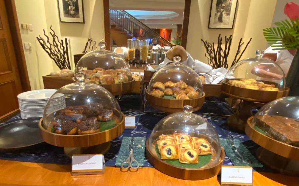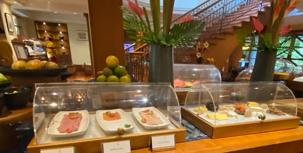 Being in the Club rooms at the hotel means of course we have our own small little Club room for breakfast, afternoon tea, pre-dinner cocktails and canapés, or just a decent cup of coffee, glass of juice, or smoothie throughout the day. The breakfast buffet is of course much smaller than the buffet in the main section of the hotel that feeds the masses. But It has all the cereal, yogurt, danish pastries, fruit etc that we’d be taking from any buffet, plus we get to choose our main breakfast off the menu, which is then cooked to order in the little kitchen tucked into the side of the room.