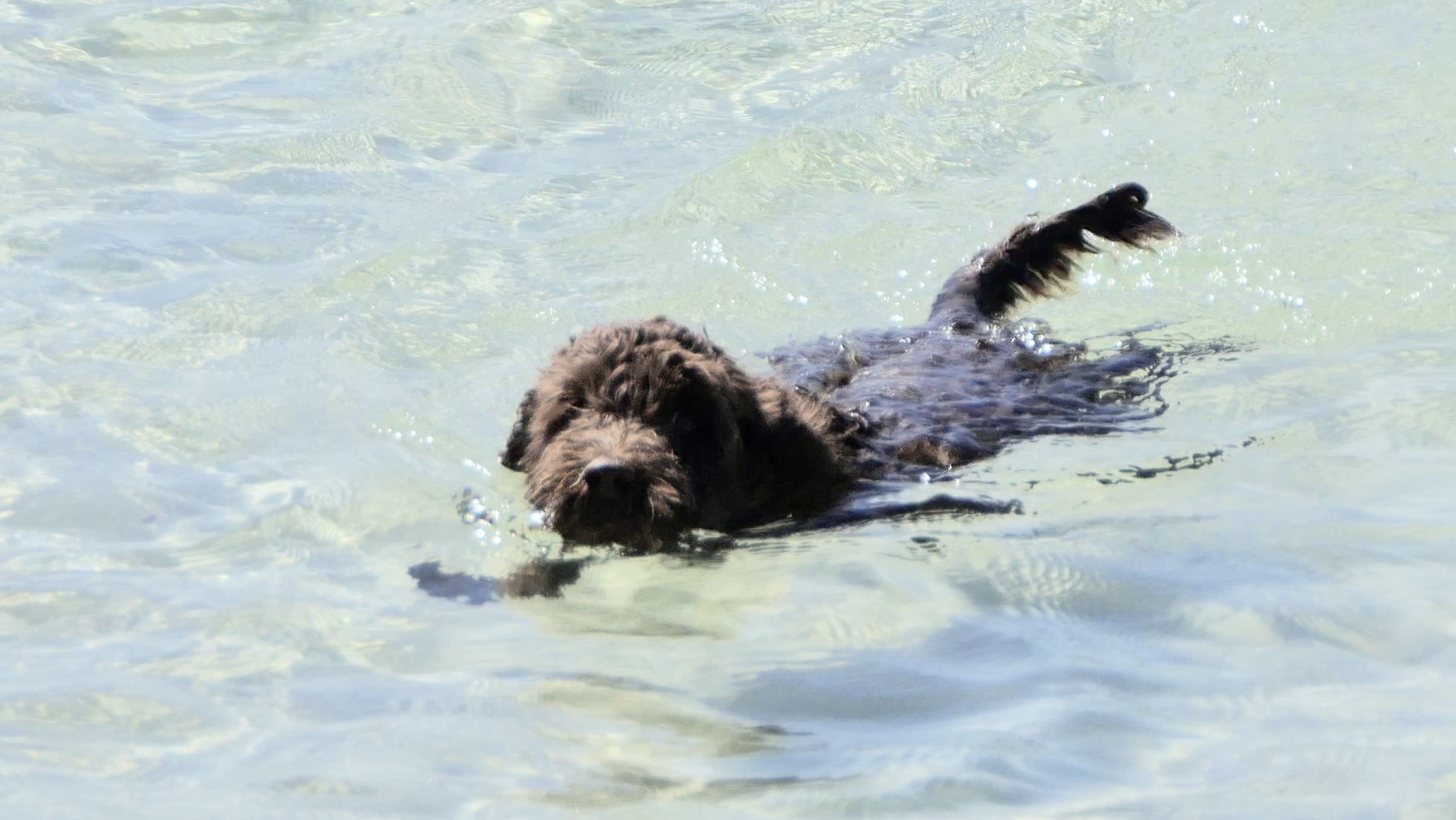 It’s unusual for him not to meet up with one of his doggie friends on the beach and to enjoy a romp of some sort. There’s Mavarick, a gentle Great Dane the size of a small pony. And there’s his best friend, Jimmy. Jimmy’s two weeks older than him, and is a full sized Labradoodle. He’s a bit rough because of his bigger size, but they work it out. When they see each other coming from opposite directions they’re both soooo excited. We love Jimmy.