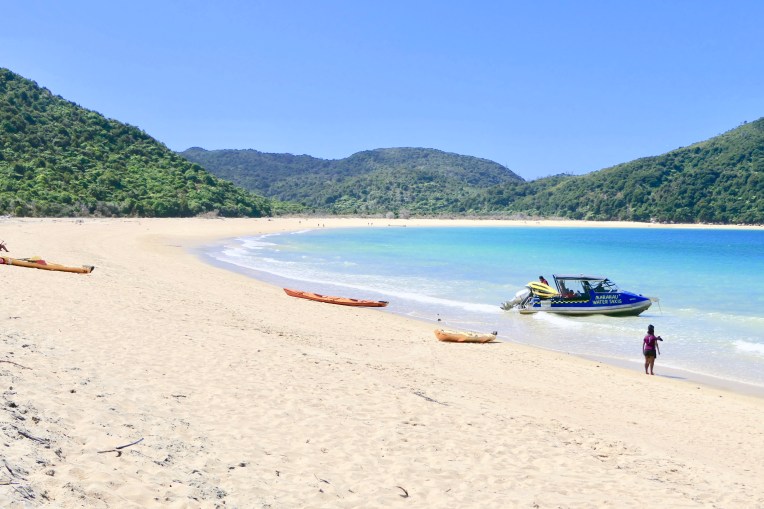 Then onto our pick up point in Motueka where we sorted our luggage ready to begin our three day hike. There’s a tidal crossing towards the end between the Awaroa lodge and Totaranui, and the tides weren’t going to be favourable for us at this crossing if we were walking the track from start to finish, or from finish to start. Instead we started somewhere around the middle. A boat trip took us to our starting point approximately a 7km walk from Awaroa lodge, our first nights accommodation.