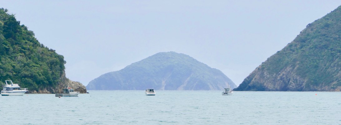 After almost two weeks of clear blue skies, and hot summer’s days, the weather while in Okiwi Bay was overcast with low cloud. Clearly, swimming was out of the question.
