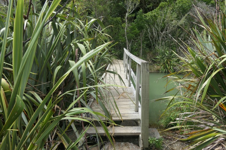 The bay on one side of us, and this little water way on the otherAnd a bridge leading you to a walk track