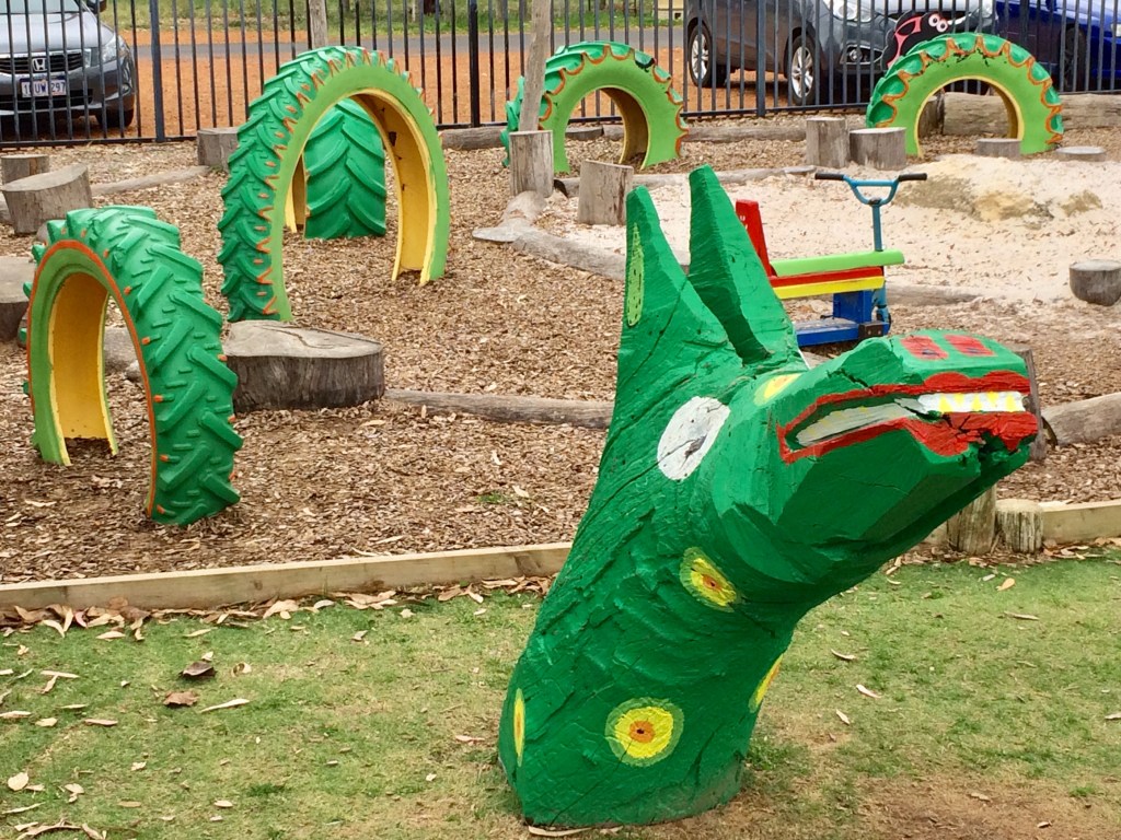 Can you see the dragon in the tiny tots play area?