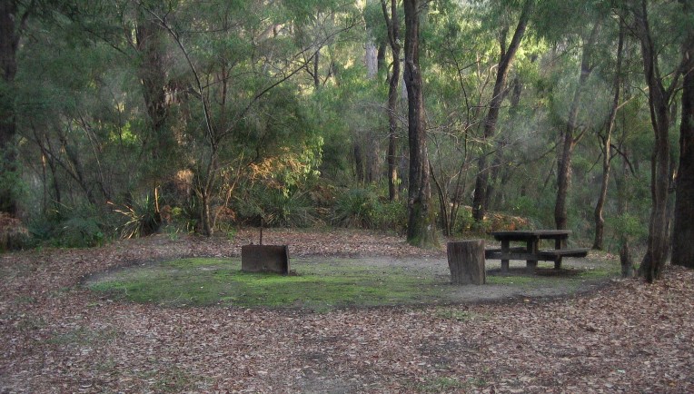 Each campsite has a picnic table and a fire ring. However, currently there is a total fire ban, in place, which runs from 30 November until 15 April. Campers can still cook on their own gas fuelled barbecues or camp stoves when the fire ban is in place. If you’re visiting when fires are allowed, please bring your own wood as it’s illegal to gather wood from the forest. I think the cost for camping is $11 per person per night, with an honour box system for payment (plus the ranger visits regularly). The usual concession cards are applicable to reduce your costs even further.