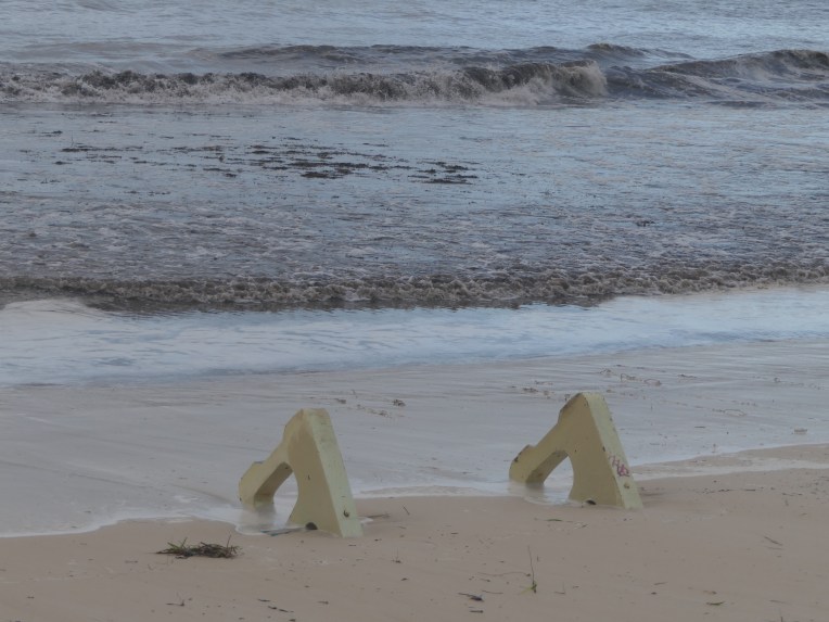The fury of the ocean has washed out tonnes of sand, carving away at our shoreline. The normally calm waters were frothing and awash with thick seaweed long after the worst of the weather had passed over. I have no doubt that once the water settles from it’s fury, it’s going to be leaving most of that seaweed where our sand should be.