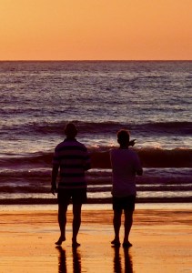 We stayed long after most people had left the beach. With the beach to ourselves it seemed like a good opportunity to have some silly fun in front of the camera, knowing full well our faces wouldn’t show up.
