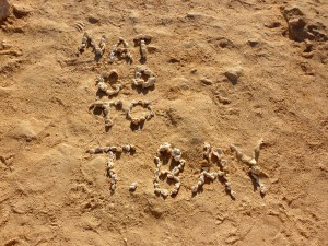 It was good to see one person had managed without the benefit of being able to use their mobile phone. We found a message written in the sand at one of the bays – clearly the meeting place had changed to Turquoise Bay.